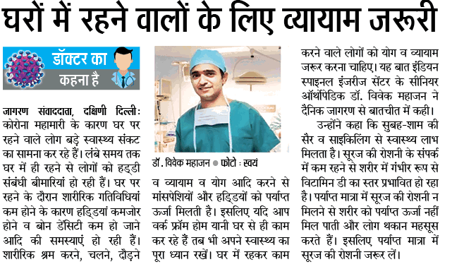 घरों में रहने वालों के लिए व्यायाम जरुरी